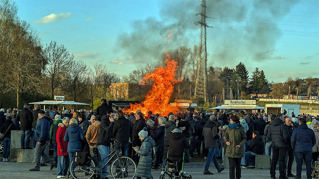 Von dort konnten wir auch die Menschen beobachten, was ich ja immer gern mache. Nun ja, es lohnte sich nicht. Auf unseren Kreuzfahrten haben wir den Begriff „Holzklasse“ für eine gewisse Klientel gebildet. Heute, am Osterfeuer, gab es viel Holzklasse. Der Eindruck wurde verstärkt durch billiges Toilettenwasser, sorry, Eau de Toilette.