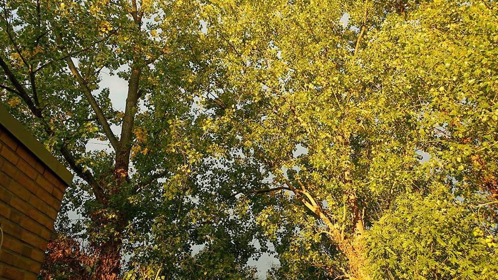 Noch sind die Pappeln dicht und grün belaubt. Es gibt nur ein paar gelbe Flecken im Laub. Nun ja, es ist wie es ist, aber toll finde ich das nicht. Ich freue mich schon auf den Frühling. Wer hier schon länger liest weiss, das Herbst und Winter nicht meine Jahreszeiten sind.