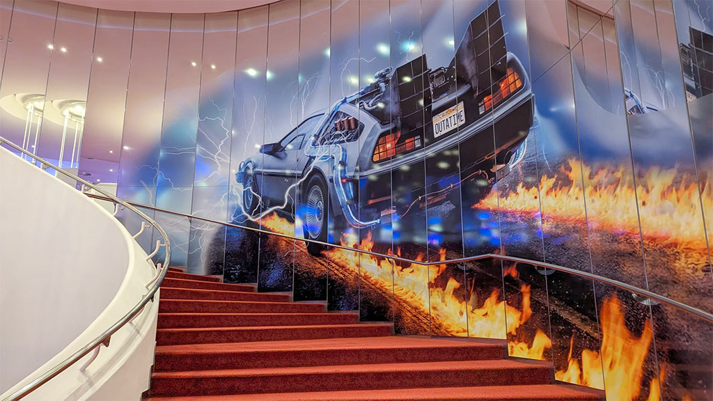 Die Szenerie wurde unterschützt durch diverse Videoprojektionen. Herausragend ist die Kletterszene, in der Doc Brown zur Rathausuhr hinaufklettert. Erwähnenswert ist auch die Illusion des über die Bühne rasenden DeLorean. Keine Illusion ist, als sich Marty und Doc Brown sich mit DeLorean auf den Weg zurück in die Zukunft machen und das Auto sich über den Bühnenboden erhebt und sich über die ersten beiden Zuschauerreihen schiebt.